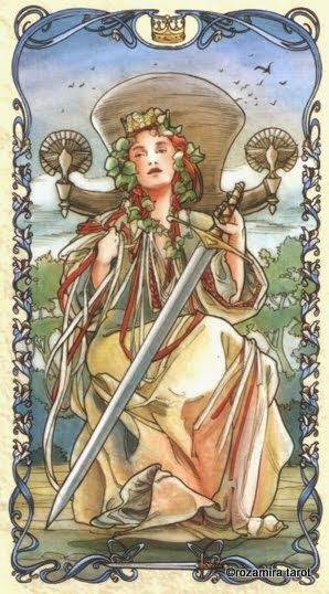 Magdalena Tarot does not claim the rights to any of the Tarot card images used here. All images are from the Tarot Mucha deck published by Lo Scarabeco
