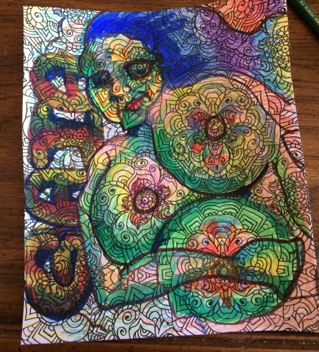 I went to bed after my solitary #ostara Ritual and dreamed that I was the #earth. My body was all the dips and curves of our planet and all the people on it who took care of me were my lovers. The sky was my lover and the plants were my lovers and the water was my lover and the sun was my lover. This #abstract drawing is an interpretation of that dream. Blessed Ostara! Honor #Gaia today!