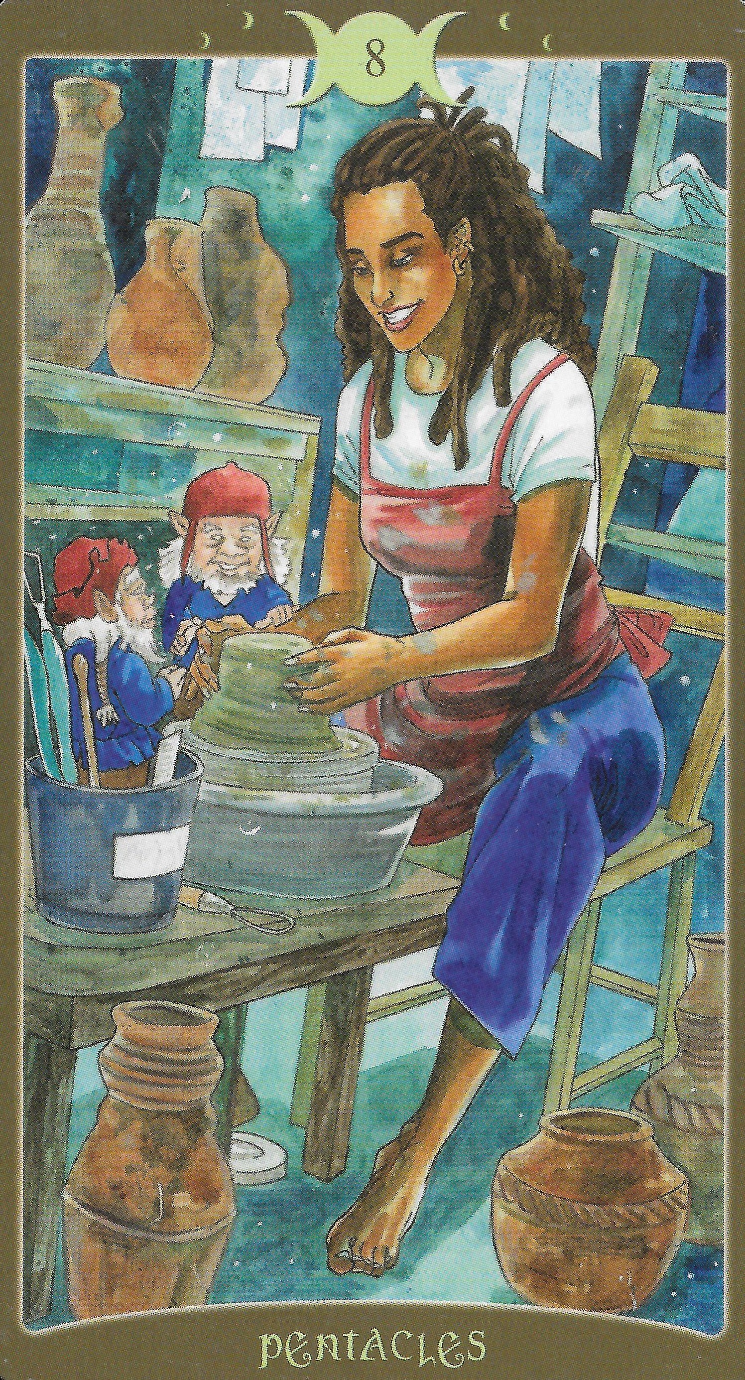 The 8 of Pentacles traditionally features a man working very hard creating eight beautiful, shiny pentacles. He is 100% absorbed in his work and he is enjoying himself. He take pride in his work and it is a reflection of himself. Moons sextile Saturn at 5:46 AM PST brings stability and practicality to your early morning. Moon sextile Uranus at 4:55 PM PST will bring excitement and enthusiasm to your early morning. You’ll feel ready to get out and try something new. Moon square Mercury at 7:56 PM PST will bring challenges with communication. The Moon is still in the eccentric sign of Aquarius for most of the day so be proud of who you are and others will be drawn to your confidence.