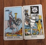 2. Okay, so I’m oddly in a very similar situation. I have a close platonic friend that I have feelings for. We sorta bonded over death as well as his grandfather passed away a month after we met and my cat died a month after that. We got in a really bad argument recently and I’m not sure we can mend our relationship. When I asked about it today, I drew death, knight of cups, and the two of cups (and drew more cards later). I wondered about it though because of all the cards I drew, death was the only negative one. But seeing you break down the meaning of those three cards combined also makes me wonder if it’s simply wishful thinking.