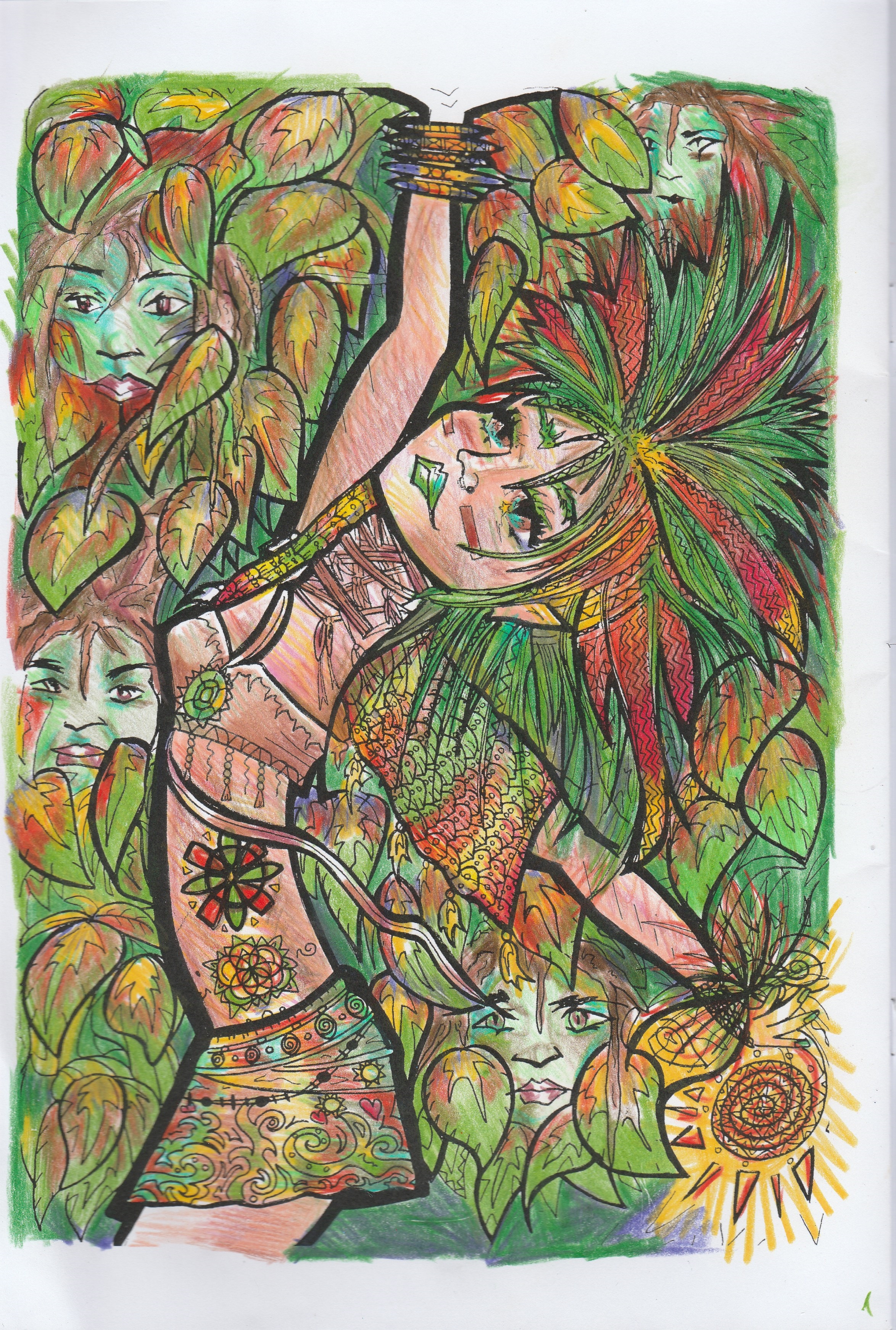 Angelina Hunter is a UK mystic who integrates music, dance and magick into her artwork. She has created and released two coloring books that utilize the art of coloring and meditation to foster a calm mind and get in touch with feminine power. Check out blank pages from her book below as well as some of the images that I colored!