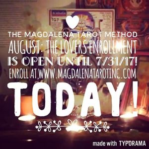 The Magdalena Tarot Method August course will focus on the most beautiful, tragic and heart breaking card in the deck: the Lovers. We will explore the concept of free will and the divorce of the god and goddess and Twin Flames. This course will also be happening during the month of the solar eclipse which is a perfect time to get to know this card on a deeper level. Register today!
