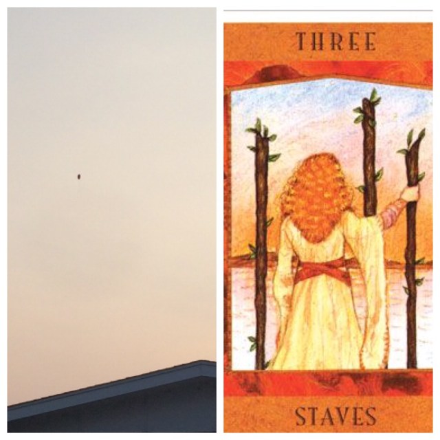When I got home I drew a Tarot card to validate my realization. I drew the 3 of Staves and ironically, it looked like me looking up at the balloon. There are new opportunities coming, maybe sooner than I think. I have been drawing the 2 of Cups a lot lately which almost always tells of a romantic connection on the way. I get the message. Until I make up my mind to add another trinket to my heart’s altar, there will be no room in the chamber of my heart of living love to welcome anyone in. And the chamber is so big and empty and dusty now because there has been no reason to enter it. It needs to be lovingly redone in order to make space for the next lesson of love I have to learn.