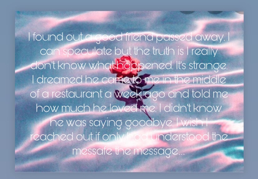 I’m sad because my friend is gone, but at least he said goodbye. But I’ll always wonder what would have happened if I reached our to him after that dream …