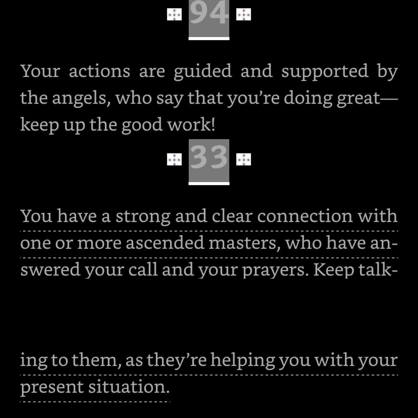 Although I’m not into Doreen Virtue style angelology and I’m a devotee of Hermeticism, I’ve found some pop culture angel resources to be excellent compliments to my mystical practices recently. It was almost like my own Holy Guardian Angel was like “You’re thinking way too hard about all of this.” I‘ve been noticing a lot of repeating numbers lately and one of my mentors recommended Doreen Virtue’s Angel numbers book. I put the numbers together and got this message in the photos. It resonated with me because of the mounting popularity of my work. As an occultist, I’m perfectly happy with my work reaching those it’s meant to reach, even if it’s just a small circle of fellow mystics. But seeing my work expand is undeniably exciting. I recognize the creative force within me as being Divine and in Hermeticism, the creator IS the greatest artist of ALL. So as my life changes and I come to see myself as a cocreator with the Absolute, doors keep opening. I have some exciting announcements coming soon. Stay tuned.