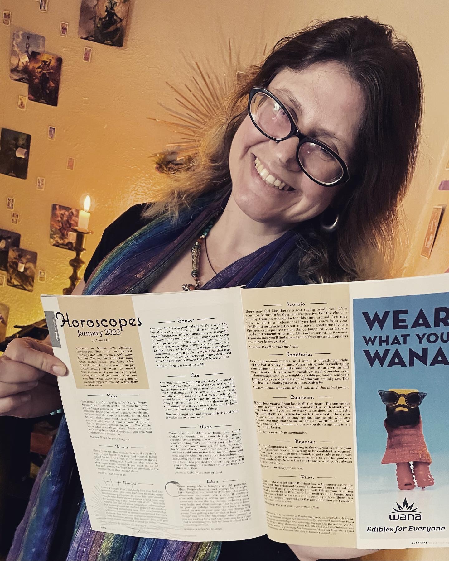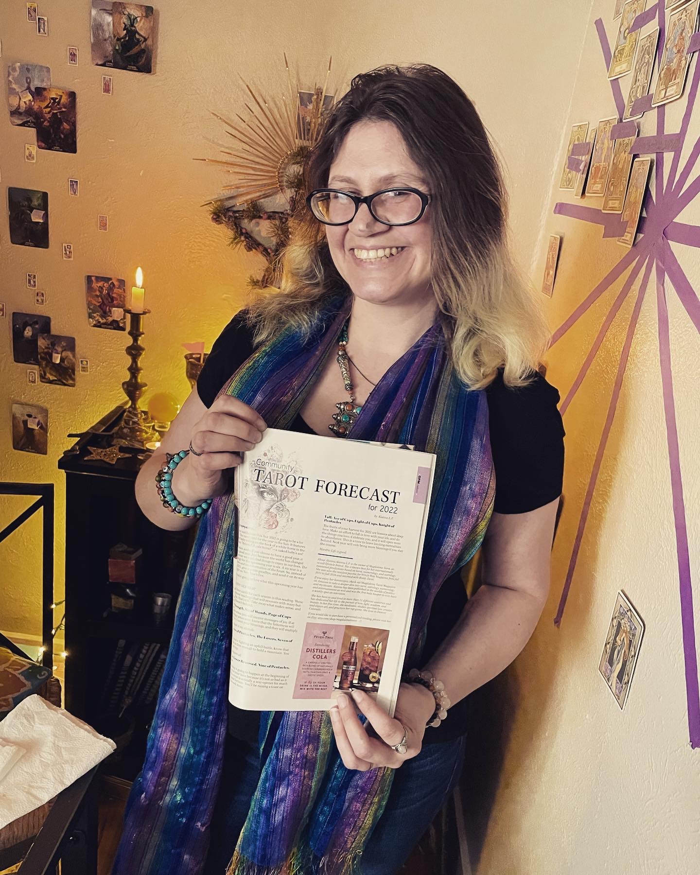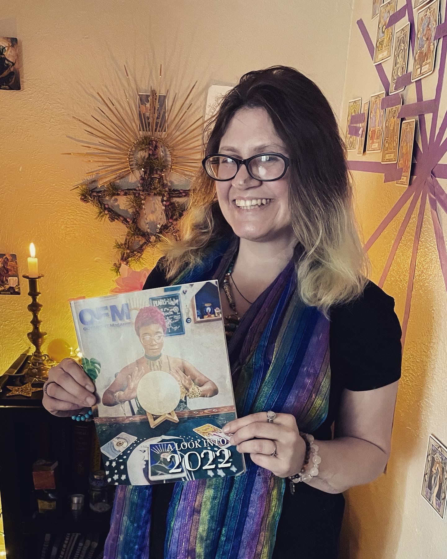 Picked up a copy of OUT FRONT magazine on a snowy walk with my boo last night. This month OUT FRONT started running a regular spirituality corner by me. I was able to finally see my horoscopes and Tarot forecast in print. It’s been a long journey but I’m finally in print. What a treat for the start of the year! I got soot on my nose moving some charcoal off the altar but the pic is still cute 😋