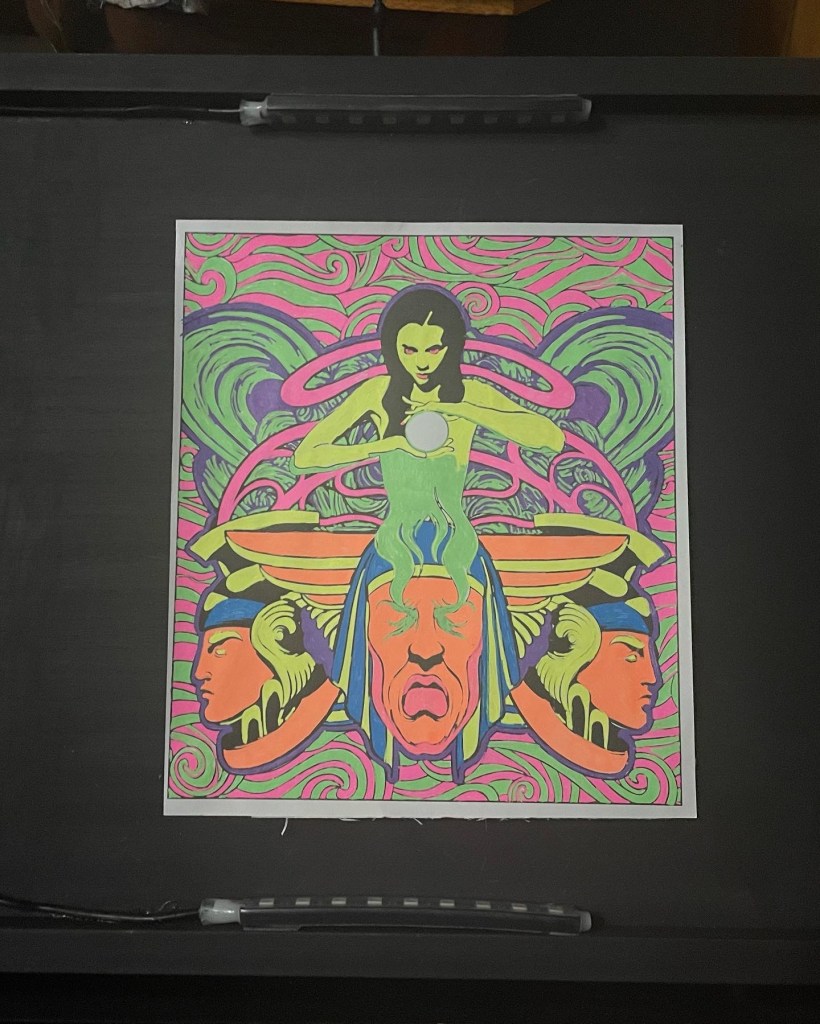 It’s really had to photograph fluorescent art. You have to see it in person to get the full effect