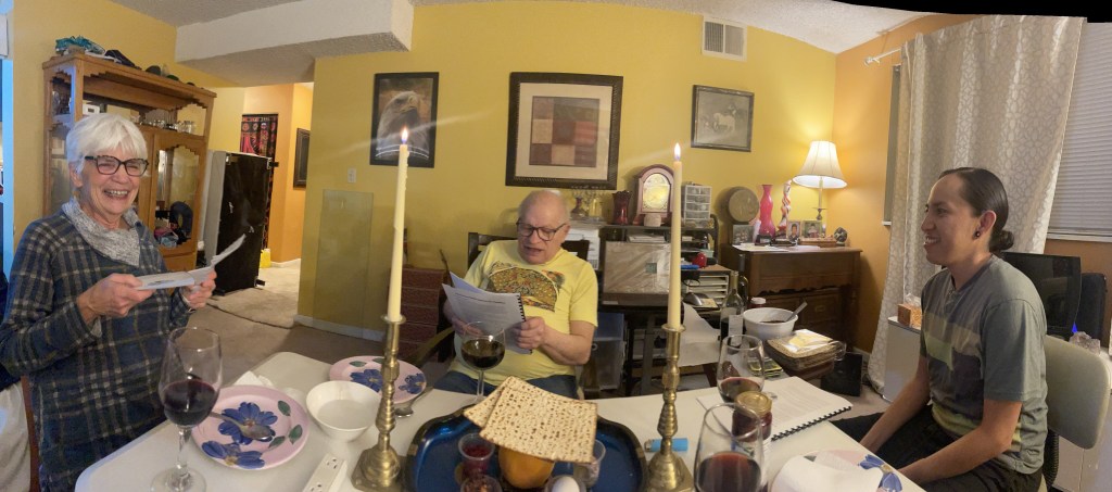 Every year I get together with my Colorado family for a Passover seder. Our group sounds like a joke, but we are a Jewish person, a Jewish convert, an Indigenous person and a Jewish-ish Arabic person (and a cat). But the most important part is that we spend the evening together and draw strength from this ancient ceremony to confront challenges in our lives and look towards the future with hope that one day, everyone will be free.