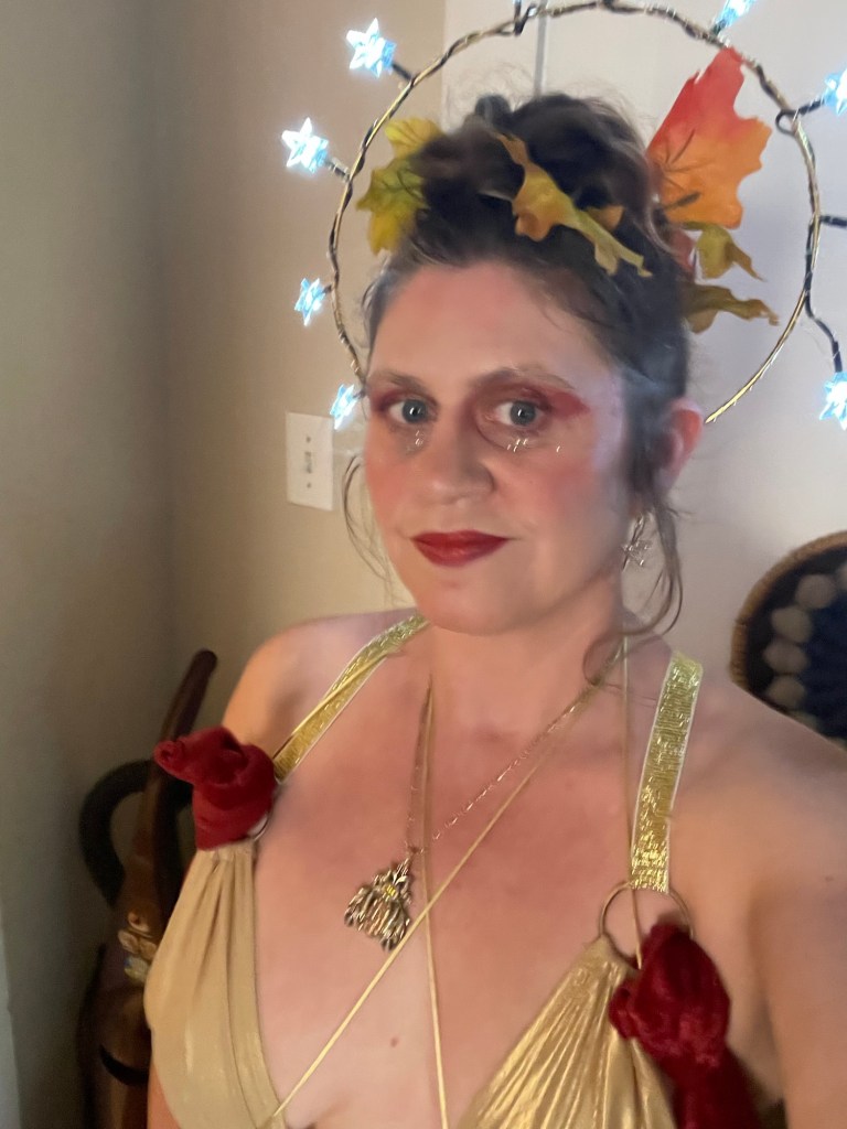 Denver Witches’ Ball 2024 was fun! I looked fabulous and felt beautiful thanks to Rachel Evelyn Whitney’s wonderful hair styling, my talent at costume makeup and my smartly engineered crown. I definitely felt like the Empress despite repurposing my Persephone costume from last year. I connected with a lot of people and enjoyed the festivities!