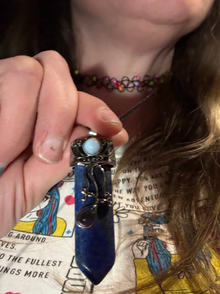 I got my necklace from the same shop I bought my selenite lamp from and I was happy I got to show them my altar I built! I FINALLY got the #lapislazuli necklace passed up in favor of the lamp. The necklace was only $18 and is lapis lazuli, amethyst and #opalite. And the vendors thought my #altar is beautiful. One of them saw #Uriel as my guardian coming through, and I laughed because I had an in the flesh visit from Uriel once when I was very hurt from an accident and she literally helped me while I waited for an ambulance.